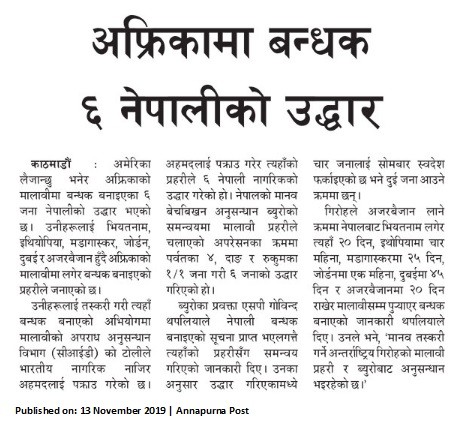 अफ्रिकामा बन्धक ६ नेपालीको उद्धार