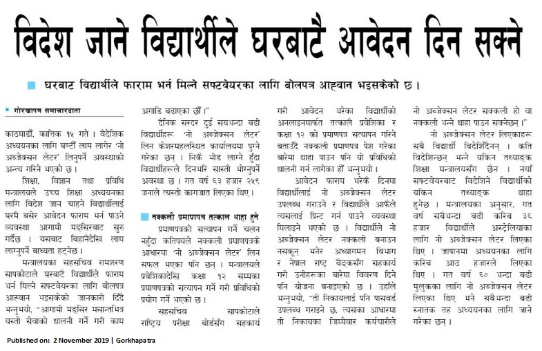 विदेश जाने विद्यार्थीले घरबाटै आवेदन दिन सक्ने