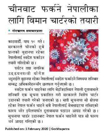 चीनबाट फर्कने नेपालीका लागि विमान चार्टरको तयारी