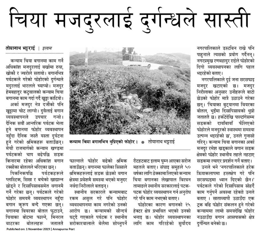 चिया मजदुरलाई दुर्गन्धले सास्ती