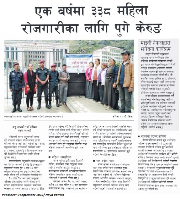 एक वर्षमा ३३८ महिला रोजगारीका लागि पुगे केरुङ