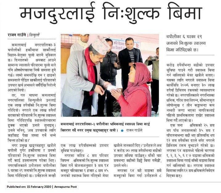 मजदुरलाई नि:शुल्क बिमा