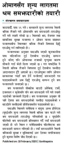 ओमानसँग शून्य लागतमा श्रम समझदारीको तयारी