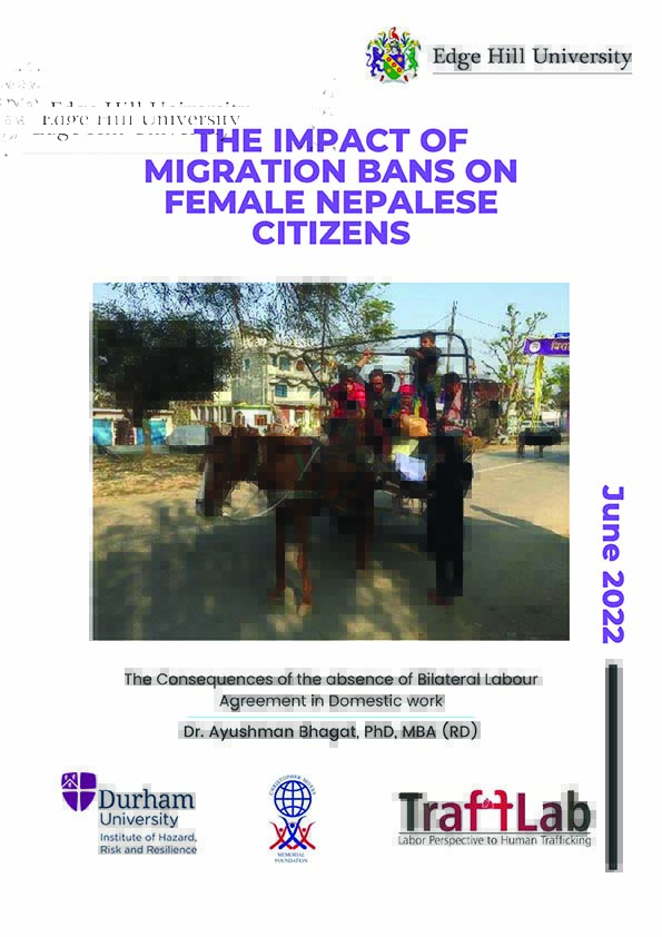 This policy brief draws on a research project entitled, Departure Avenues: the politics of anti-trafficking and emigration control in Nepal. In particular, some contents of the report are extracted from the Author’s forthcoming article entitled, Entrapment processes in Emigration Regime: The Presence of Migration Bans and the Absence of Bilateral Labor Agreements in Domestic Work in Nepal due publication in Theoretical Inquiries in Law Journal. Parts of this brief have already been published in journals like Political Geography, and online platforms like Beyond Trafficking and Slavery, and will soon be published in the form of articles and book chapters. This brief has been written with the support of the TraffLab research project (www.trafflab.org) and has received funding from the European Research Council (ERC) under the European Union’s Horizon 2020 research and innovation programme (grant agreement No 756672). The dissemination of the brief has been supported by the Research Investment Fund of Edge Hill University, UK.