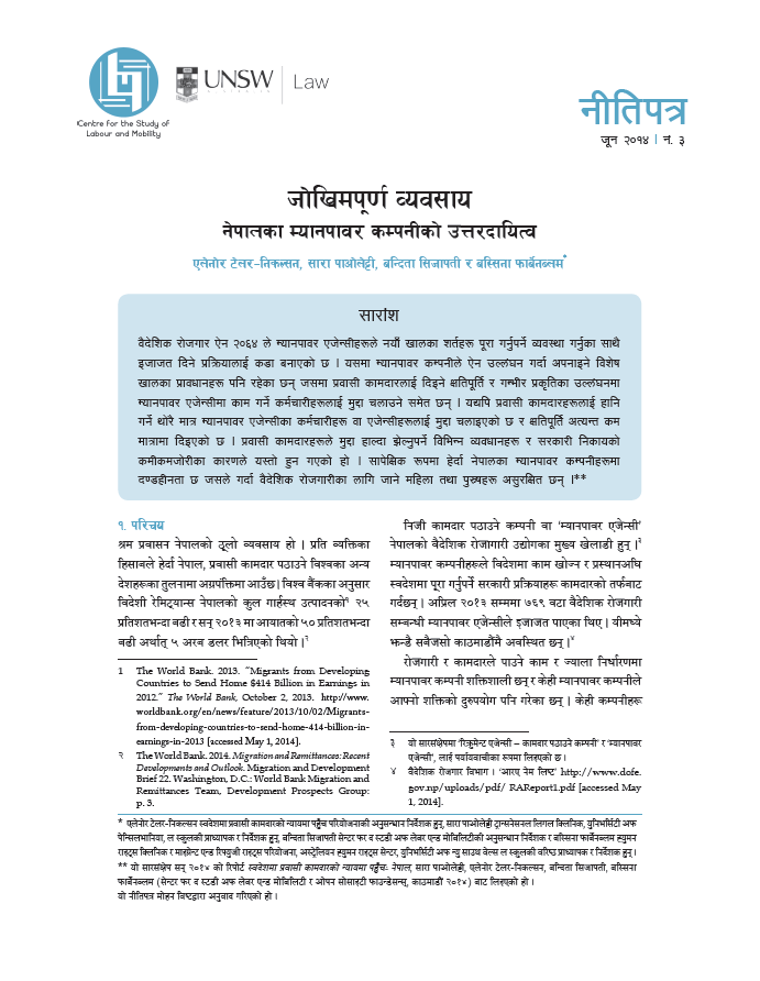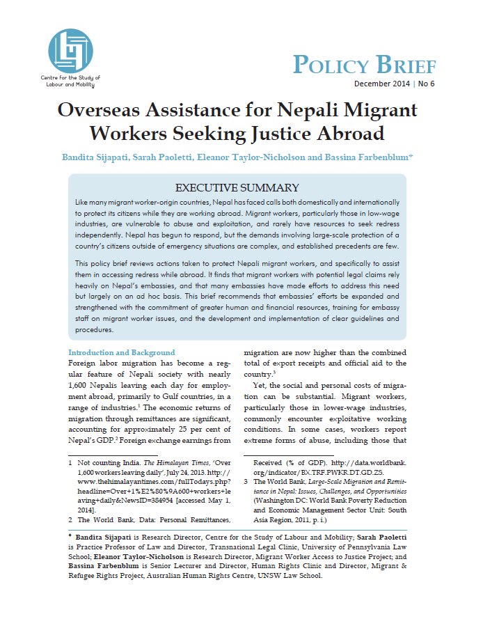 Like many migrant worker-origin countries, Nepal has faced calls both domestically and internationally to protect its citizens while they are working abroad. Migrant workers, particularly those in low-wage industries, are vulnerable to ...